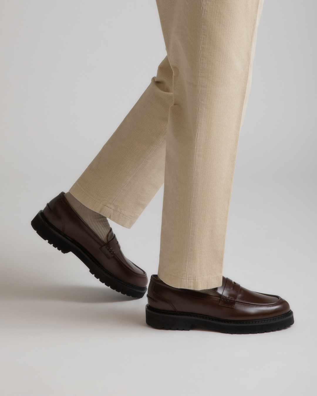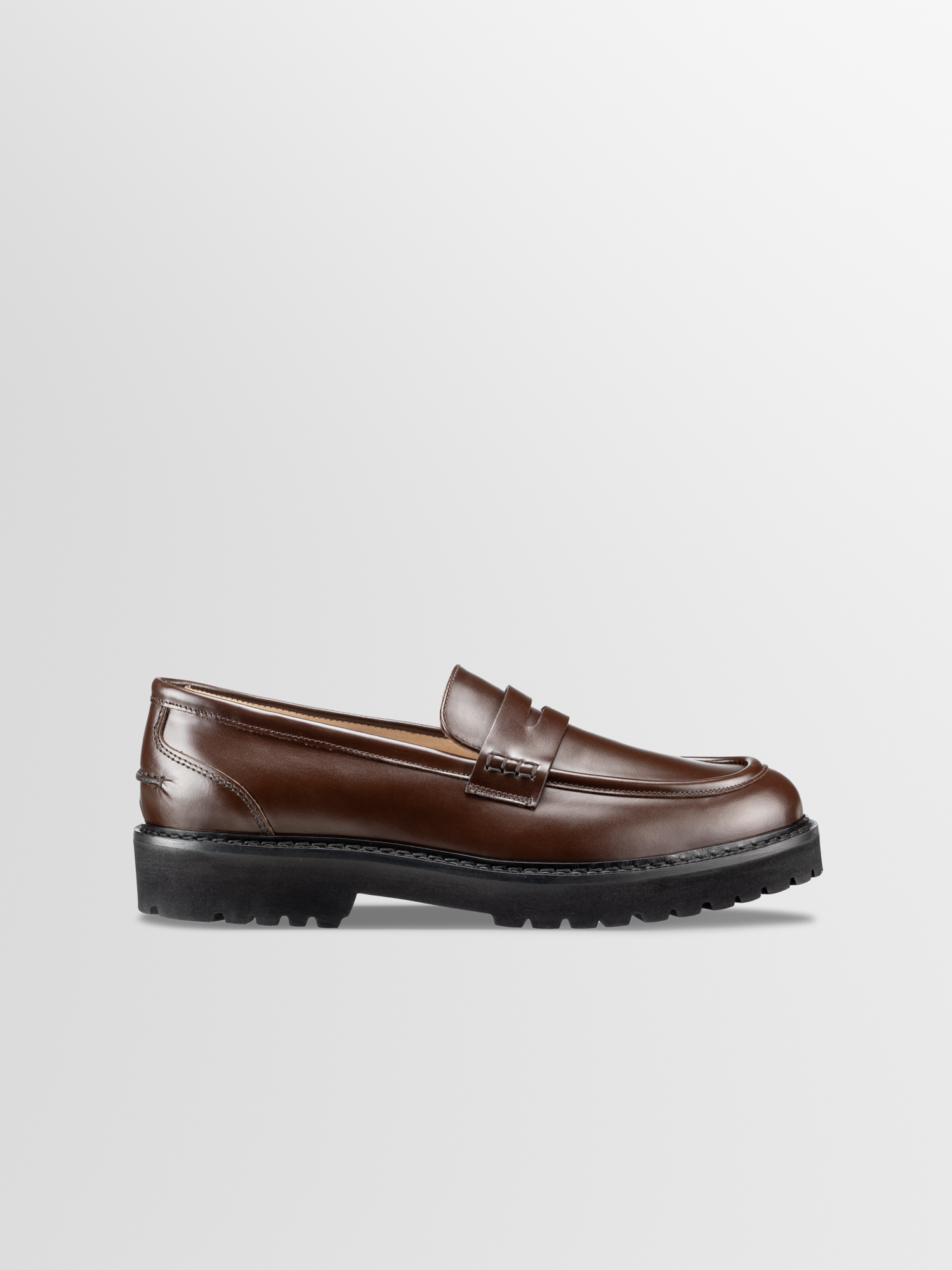 The Arezzo's chunky lug sole lends the classic loafer silhouette a cool, bold look. Handcrafted in Italy from smooth Italian leather, it has a penny slot at the vamp and exposed hand-stitching along the collar.