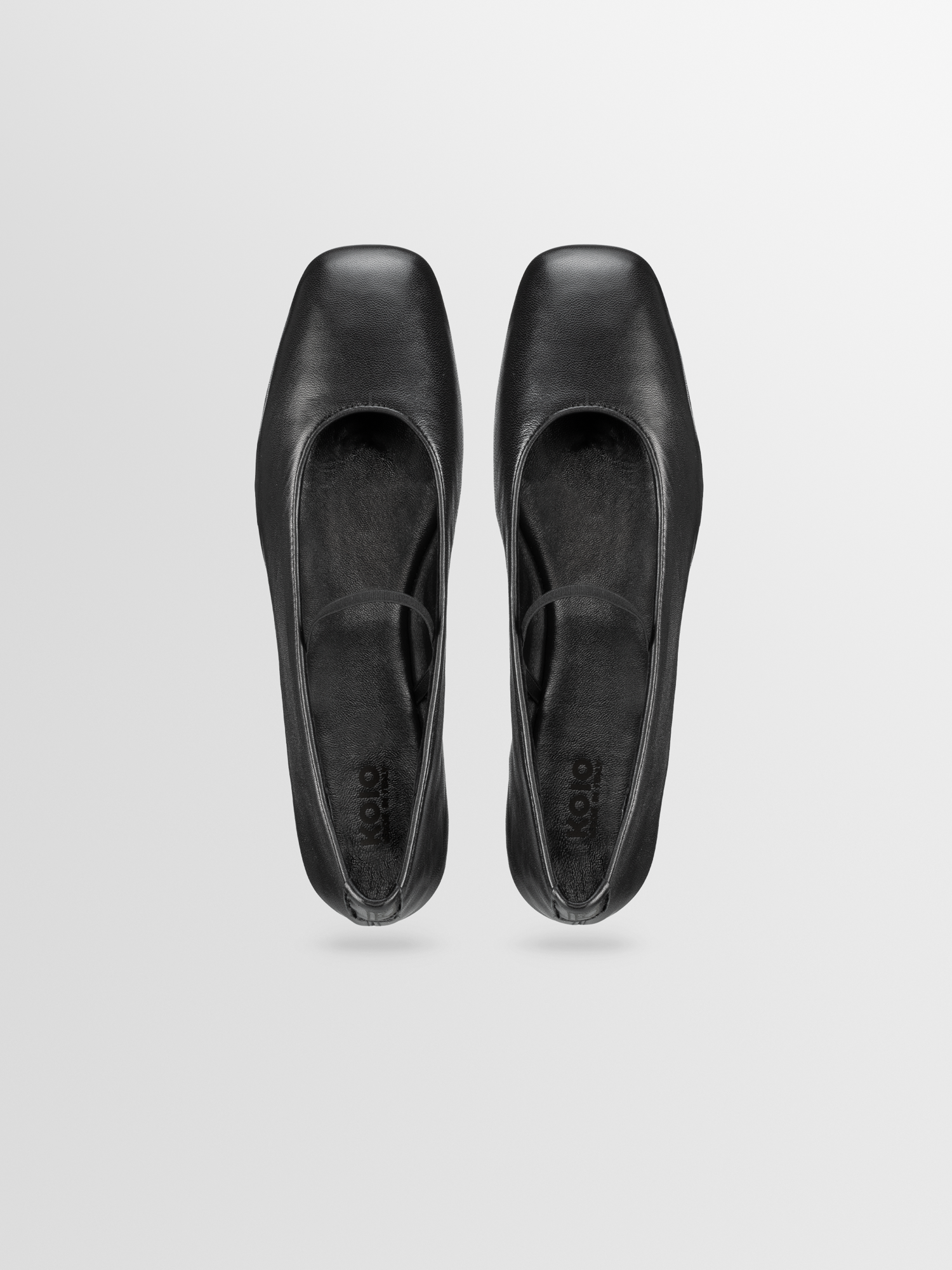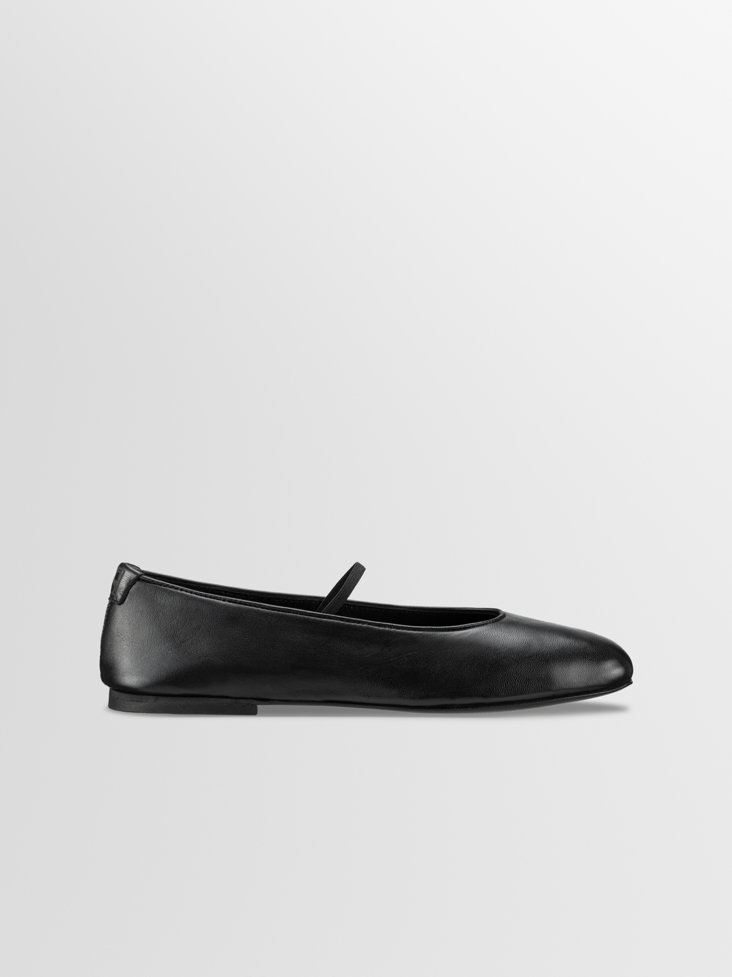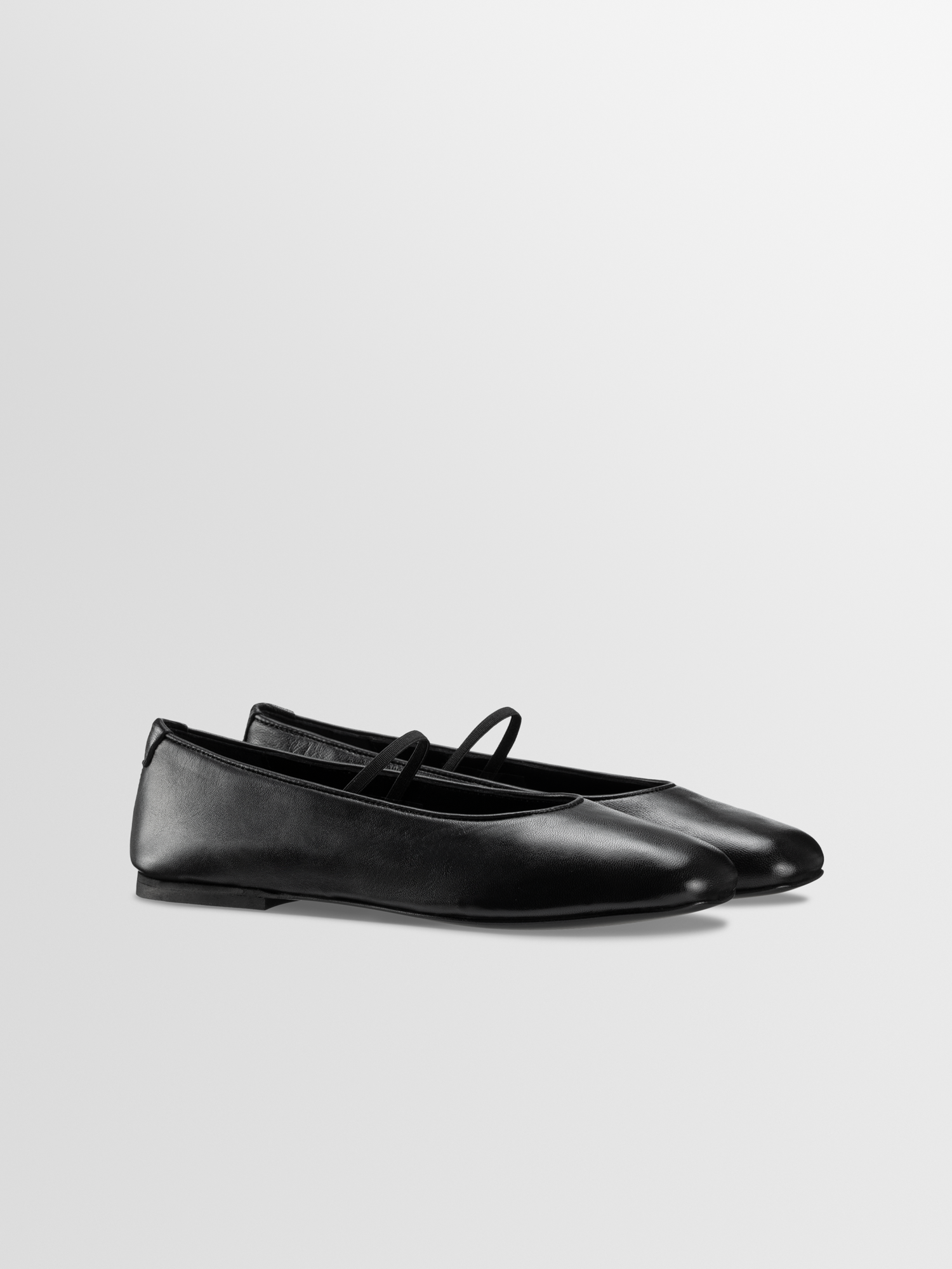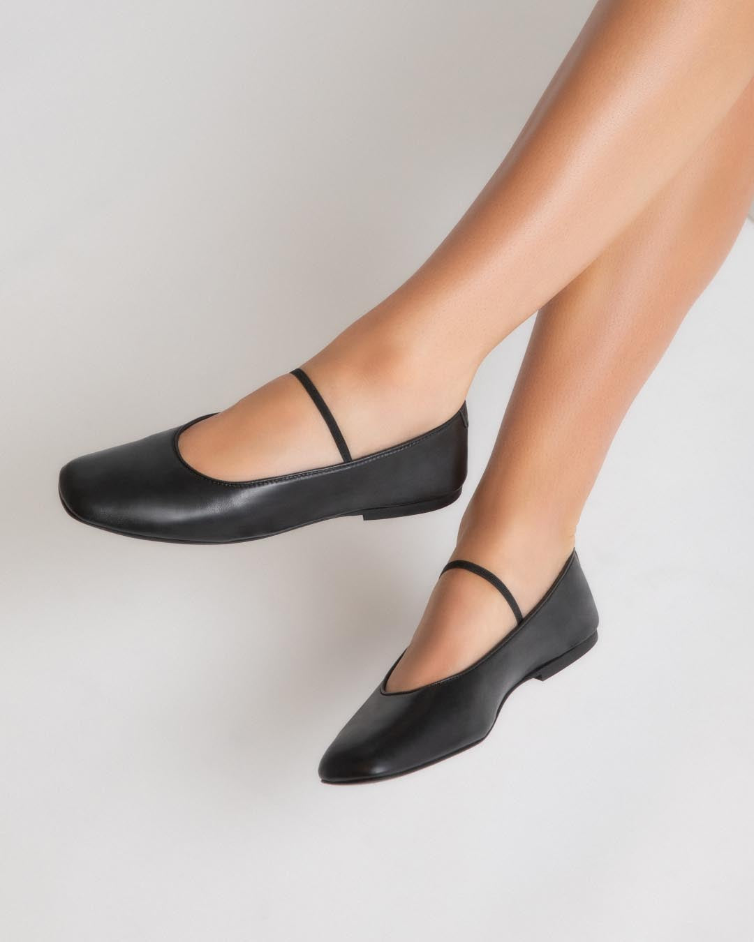 The Aurora is a modernized ballet flat with a soft square toe. It's handcrafted using full-grain Nappa leather. A thin elastic strap snugly hugs the shoe to your foot, ensuring a perfect fit. Its slim and chic appearance is an essential addition to your wardrobe.