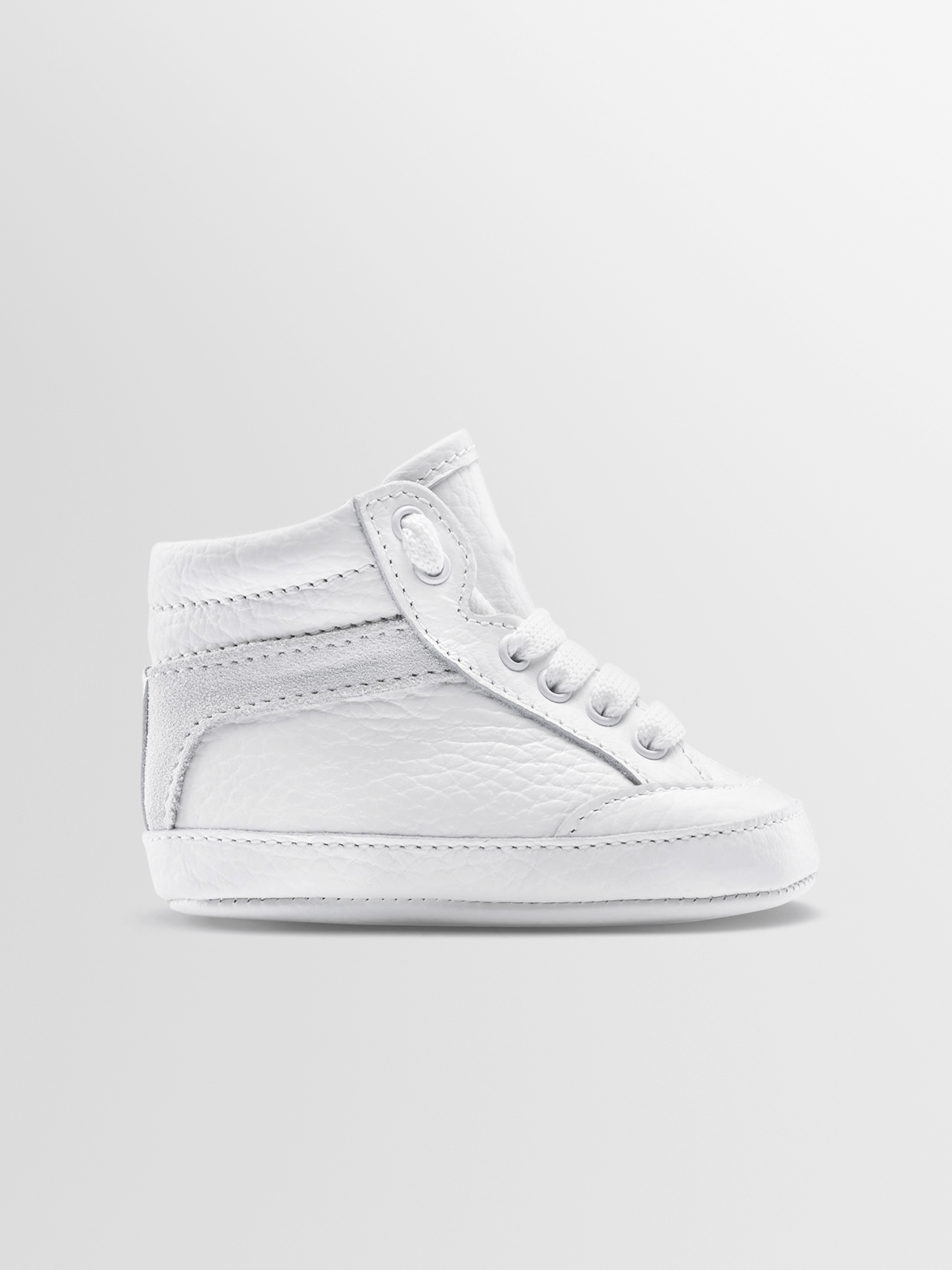 Our most classic high-top style is scaled down to fit your mini-me. It's handcrafted in Italy from Italian leather and suede, then fitted with cushioned insoles that feel cloud-like beneath your little one's feet.