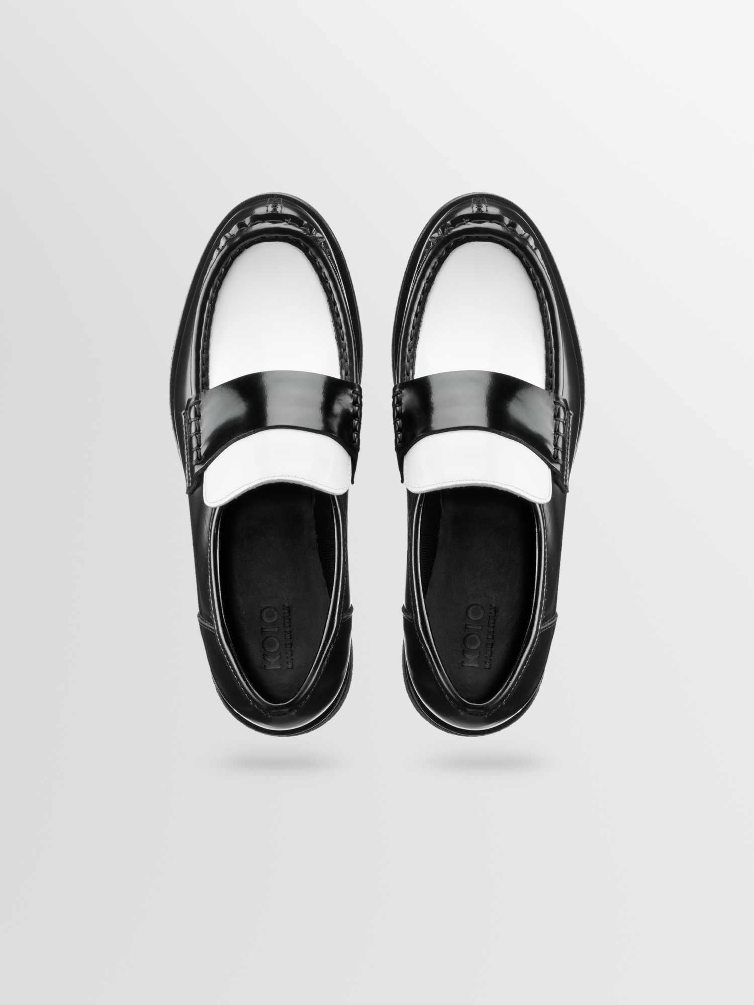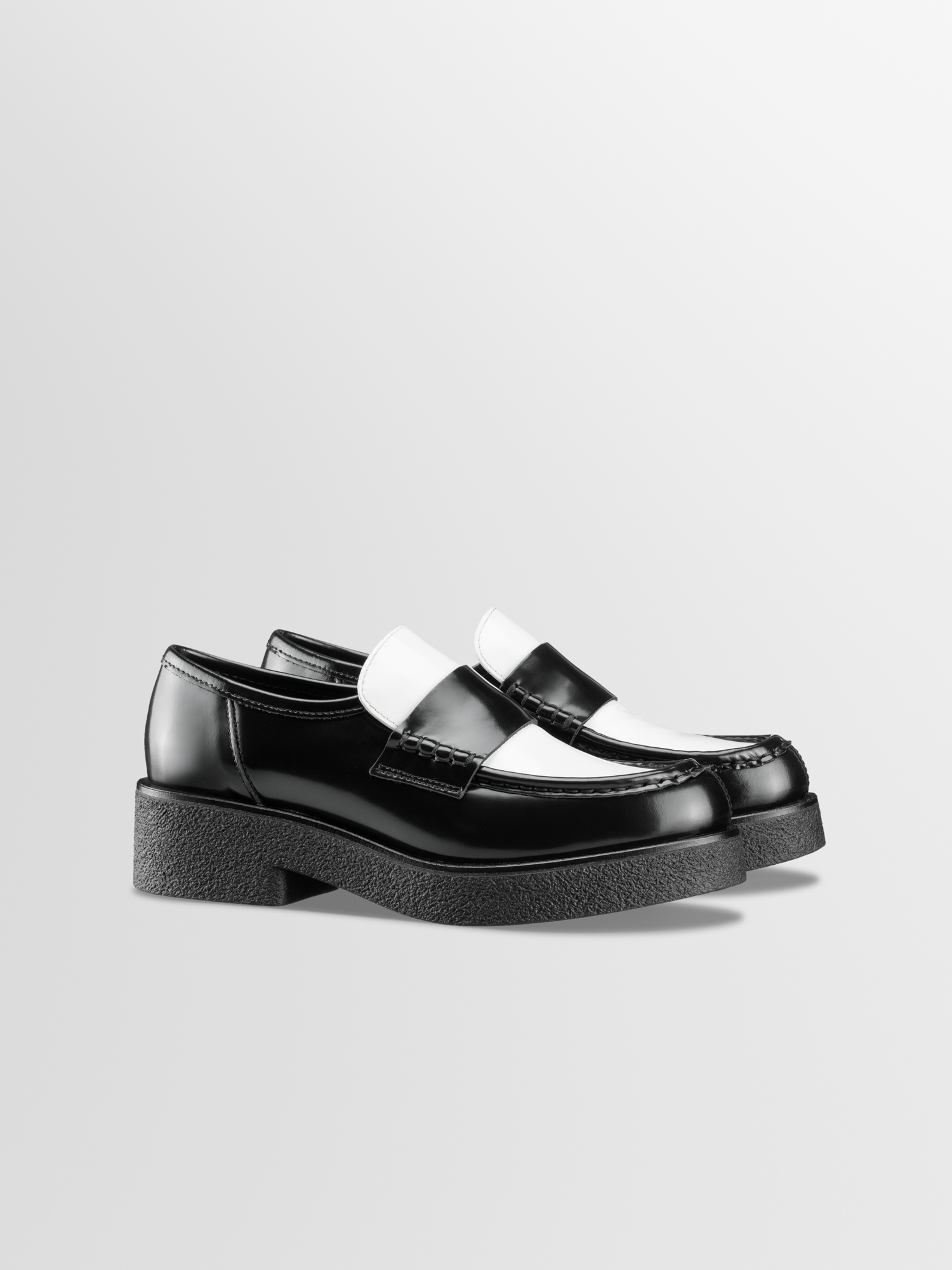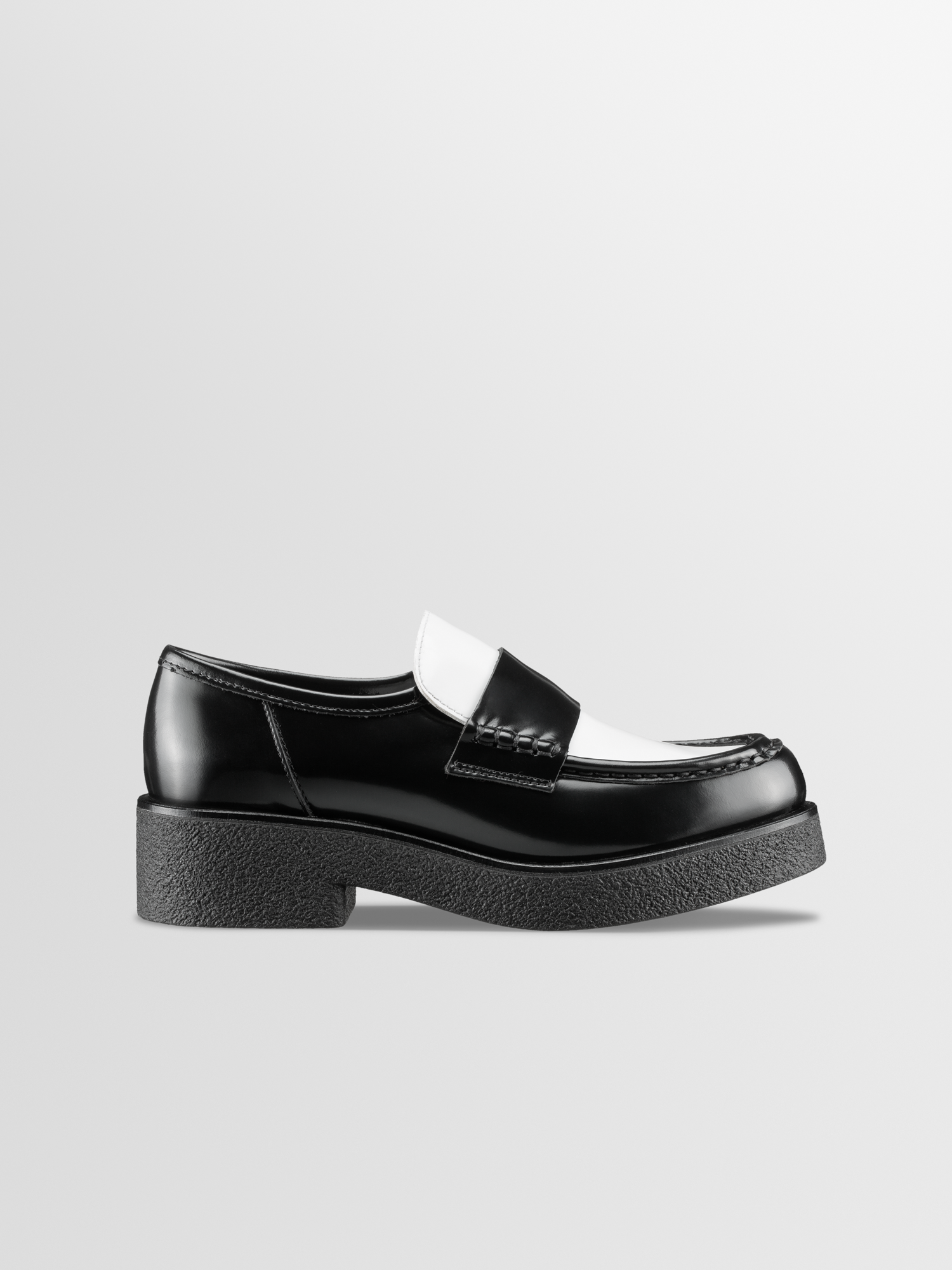 Level-up your look with the platform Bari loafer. Handcrafted in Italy from smooth Italian leather in a black and white Dice colorway, it’s set on a chunky black rubber-crepe sole that lends the classic loafer silhouette an ultra modern feel.
