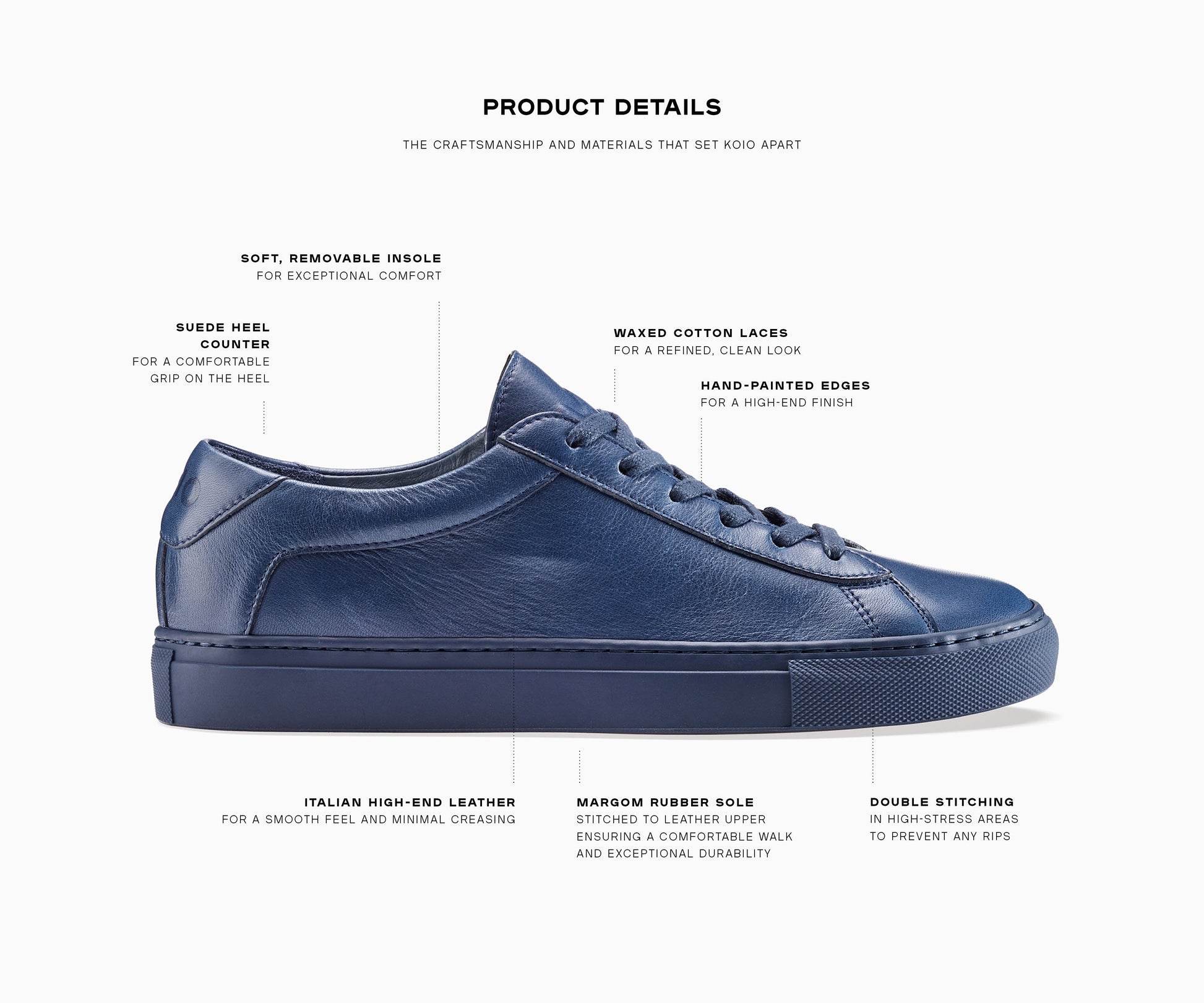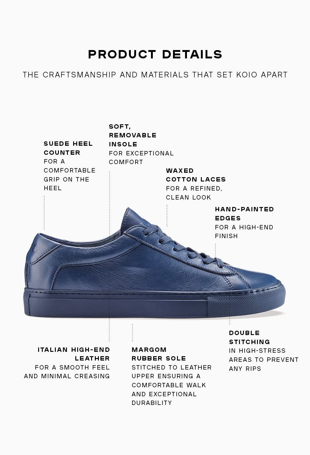 The Capri is updated in 'Midnight,' a deep blue hue for day or night. Handcrafted in Italy from smooth leather and threaded with matching laces, it's set on a tonal rubber sole to ensure a comfortable fit.