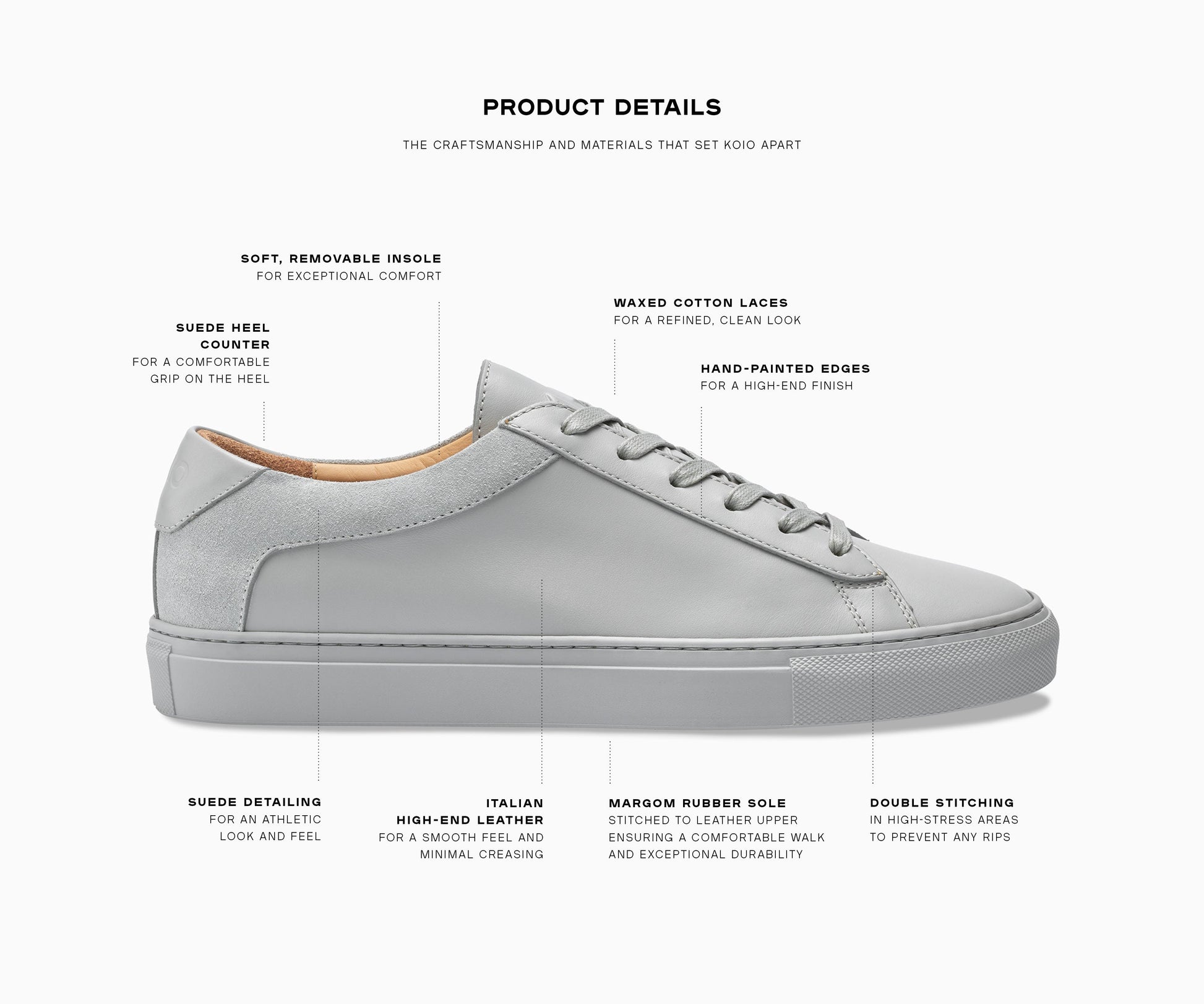 • Set on a 100% rubber sole (50% natural, 40% recycled, 10% conventional)