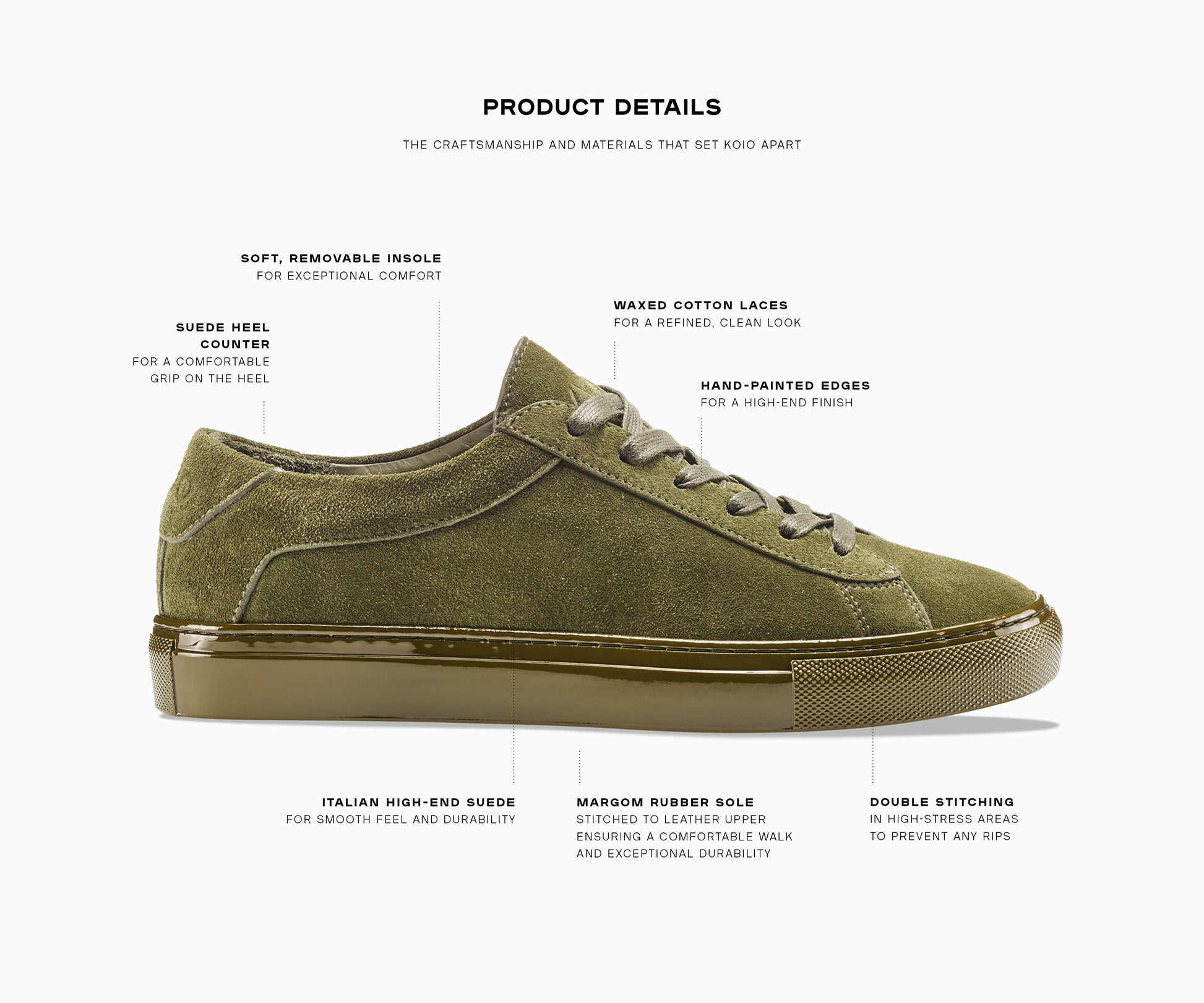 The Capri Thyme is made from an Italian calf suede upper that combines softness and durability in a unique way. The tonal sole elevates the shoe and makes it a styling no-brainer around the clock. Thanks to the high quality of the materials, this shoe can deal with weather and wear like no other.