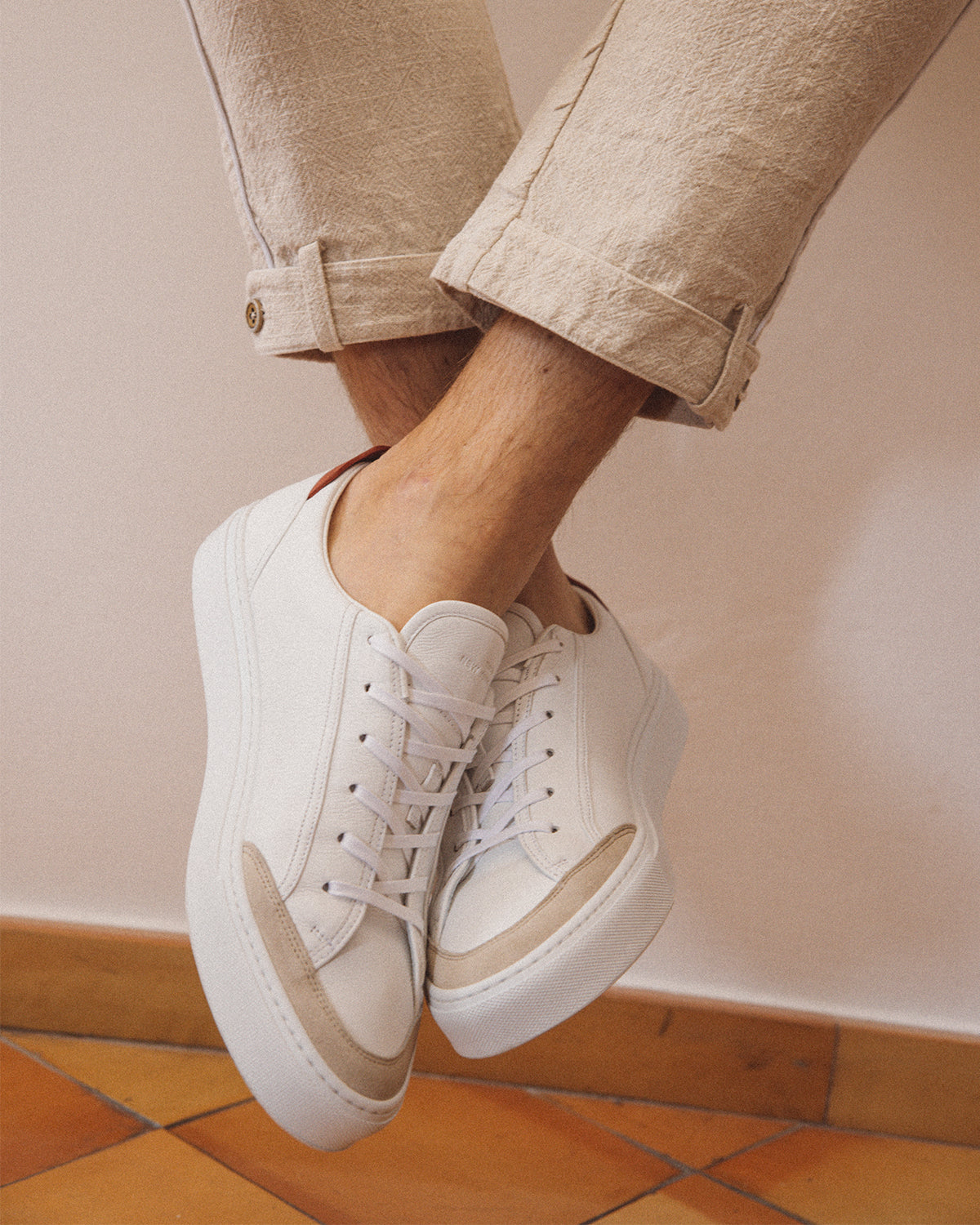 The Koio x Le Sirenuse sneaker is part of a limited-edition collaboration with Positano's most iconic hotel. Handcrafted in Italy from white and beige Italian leather and suede, this style has curved seams that recall the clean lines of the hotel's architecture and is detailed with a red heel counter and insole inspired by its red façade. With every step you take in this sneaker, you'll be accompanied by the vibrant spirit of Le Sirenuse.
