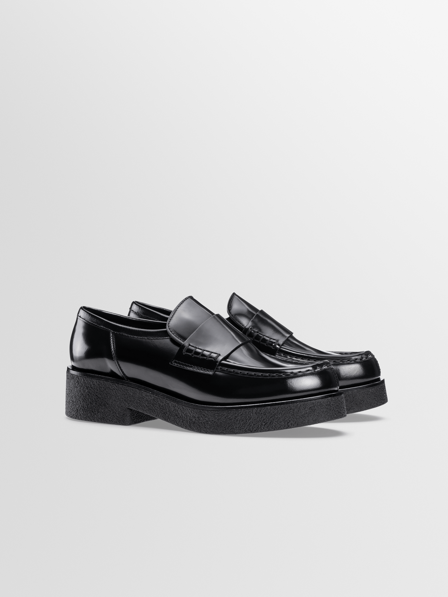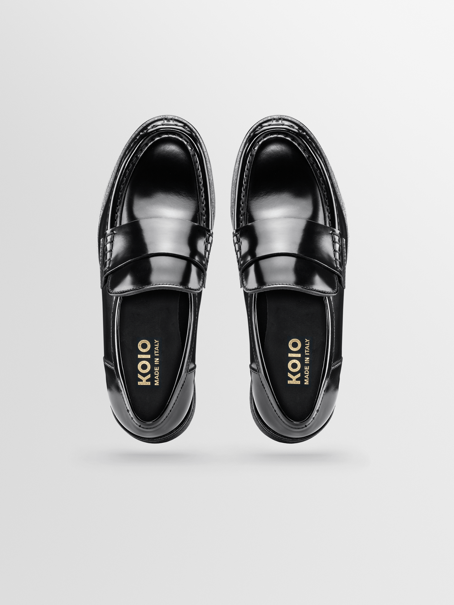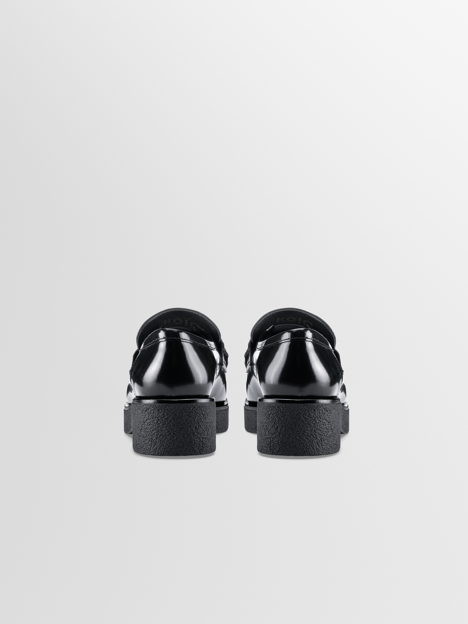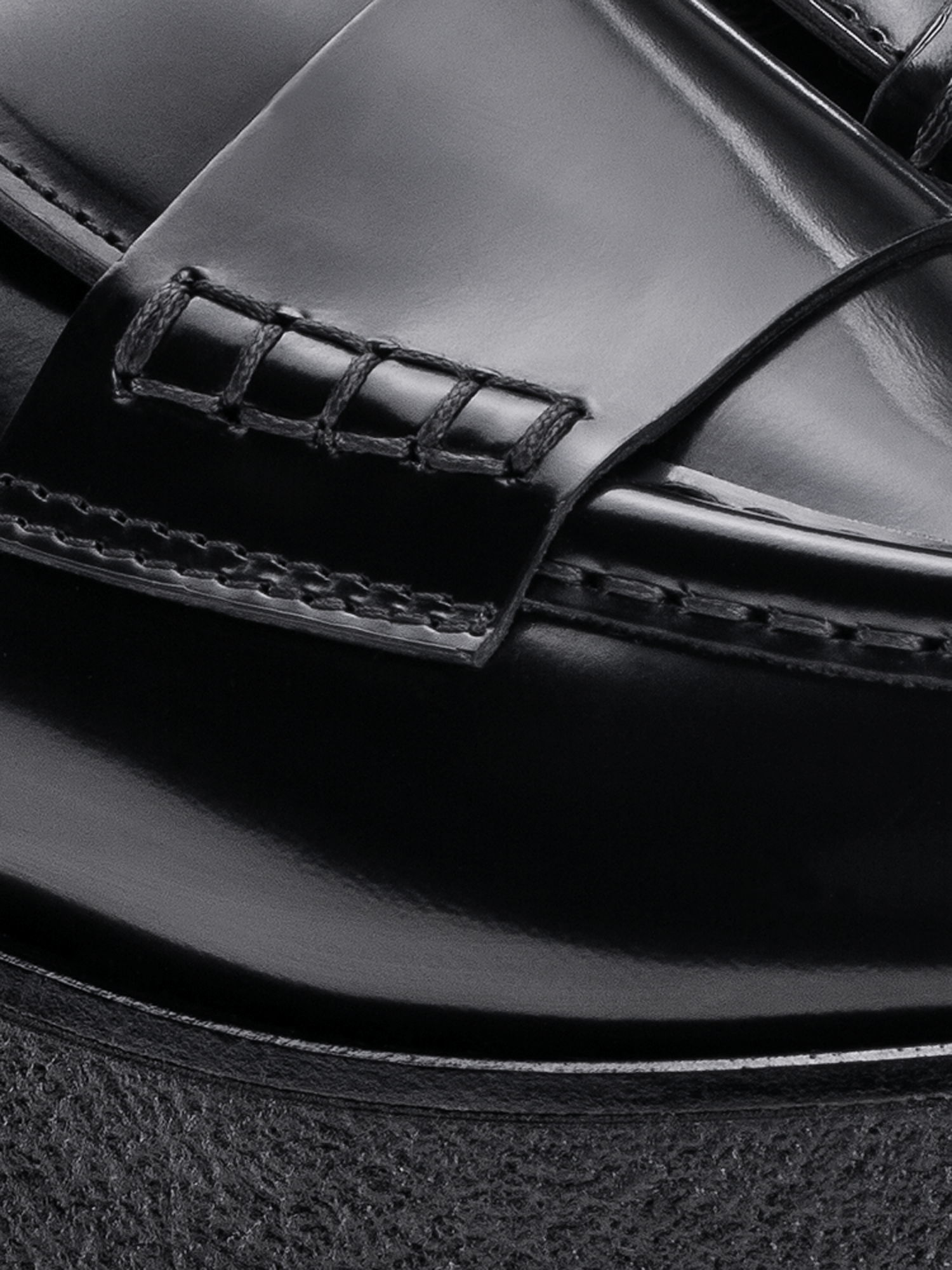 Level-up your look with the Bari, a classic loafer modernized by a rubber-crepe platform sole. It’s handcrafted in Italy from LWG-certified Glossed Black leather which is polished for a high shine.