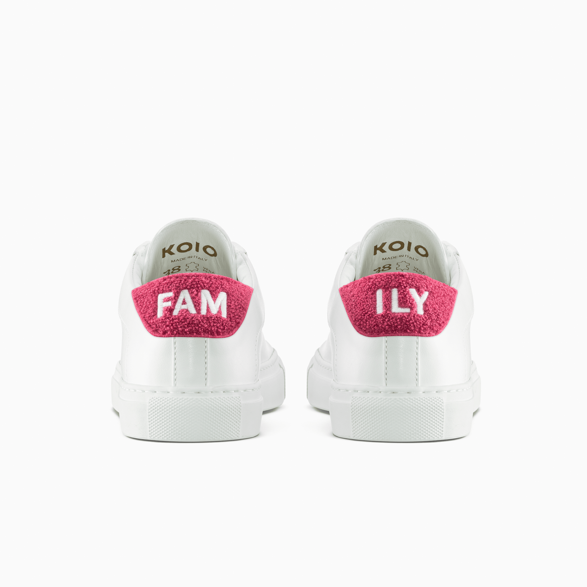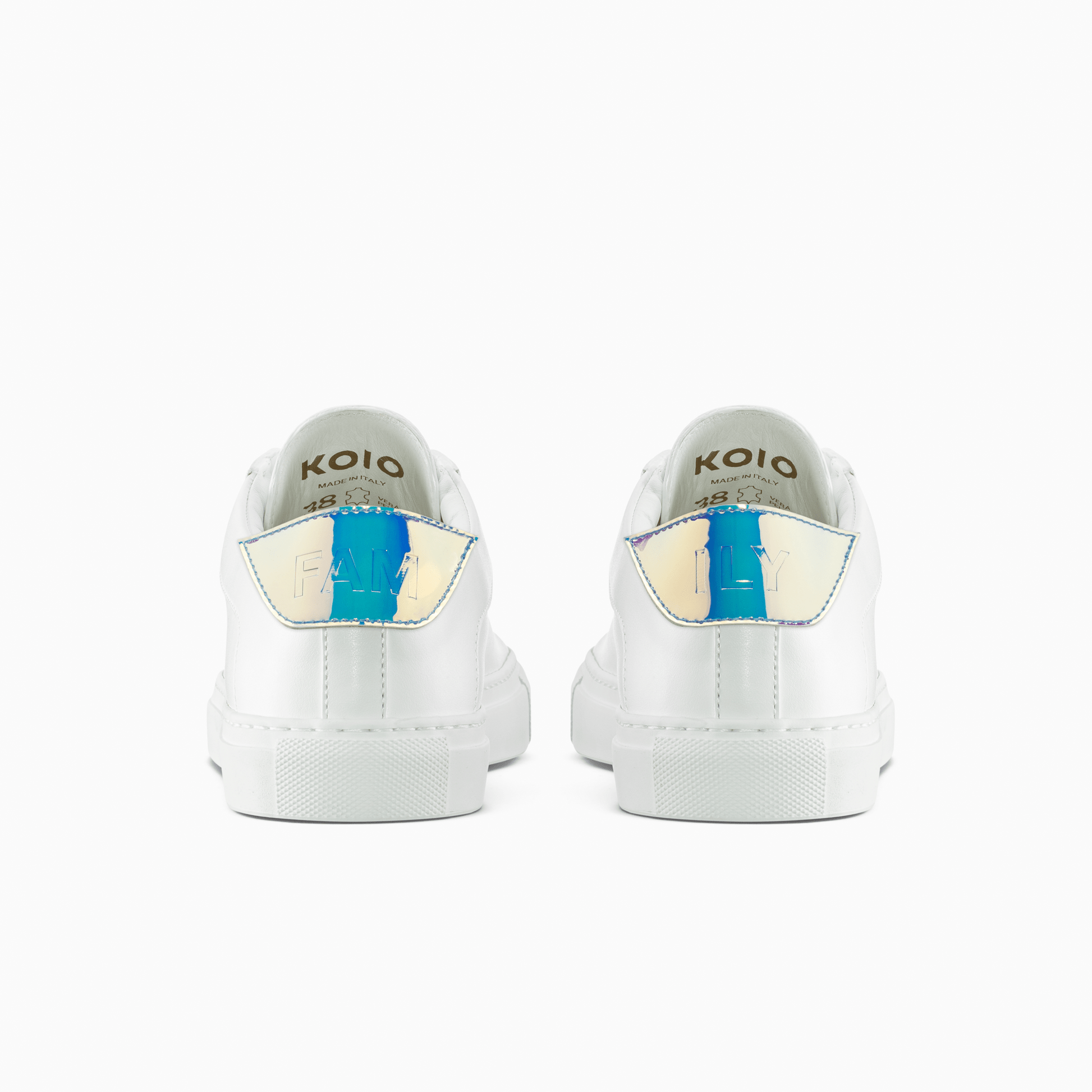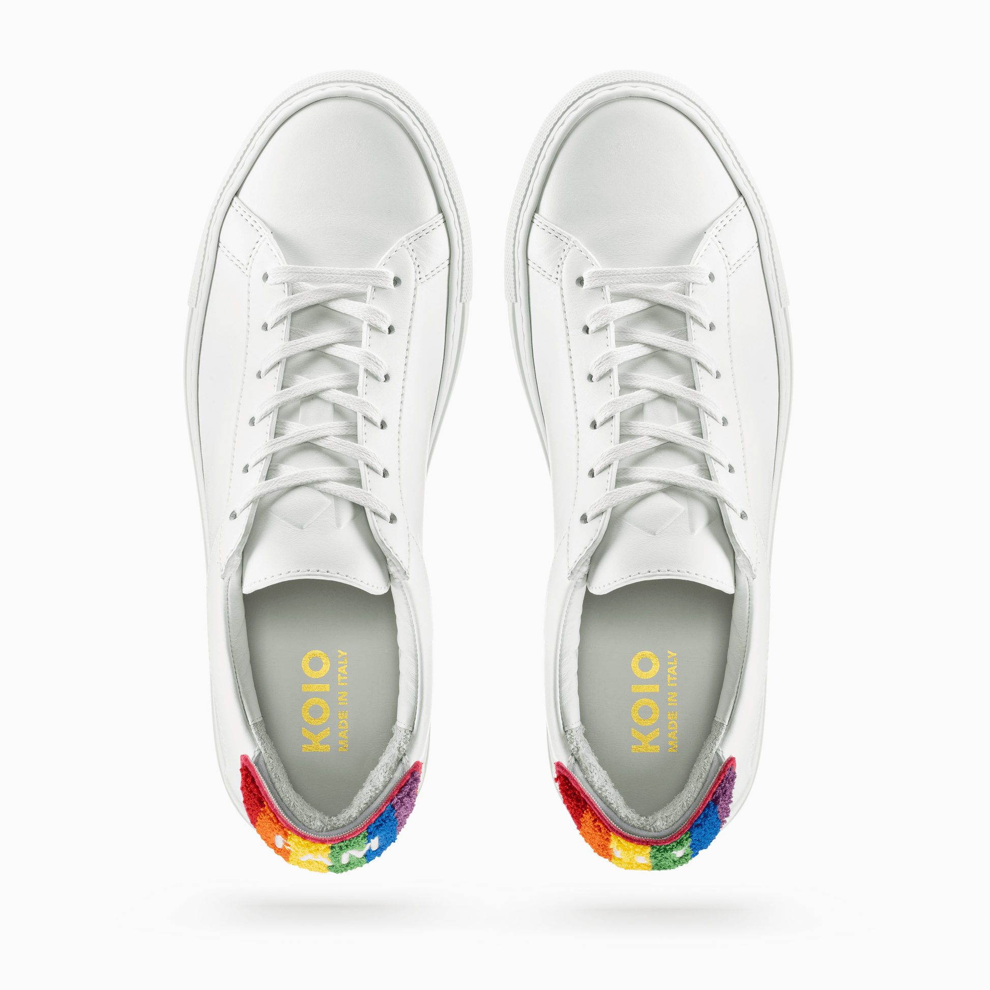 The Capri in ‘Pride’ is a celebration of the LGBTQ+ community. Handcrafted from smooth Italian leather and set on a durable rubber sole, it comes with three sets of VELCRO®-fastening heel patches featuring the letters ‘FAM’ and ‘ILY’—attach a matching pair, mix and match two different ones, or remove them entirely to reveal an embroidered logo:
