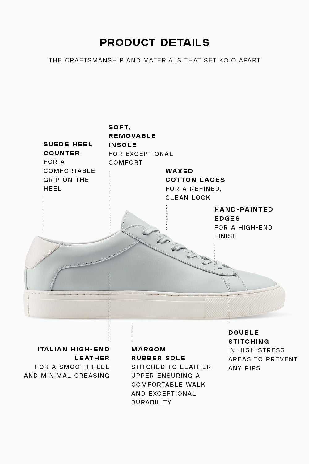 The perfect Sunday afternoon. This classic blue is the epitome of a summer morning. It’s smooth leather upper gives it a classic finish, with unique white detailing on the heel. The Capri Sky Blue will lift you to cloud nine. Where will you go from there?