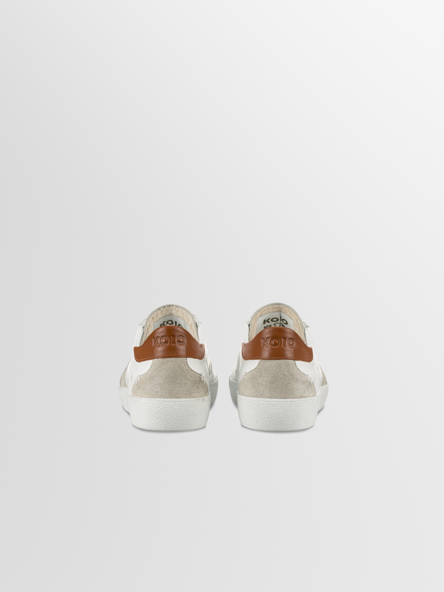 The Fabro sneaker is hand-distressed, so each pair has a uniquely authentic vintage look. Shown here in a white, grey, and brown Cinnamon colorway, this pair is handcrafted in Italy from Italian leather and suede. It's detailed with our signature K logo at the side and finished with hand-stitching at the heel. The breathable cotton-terry lining keeps you cool and comfortable.