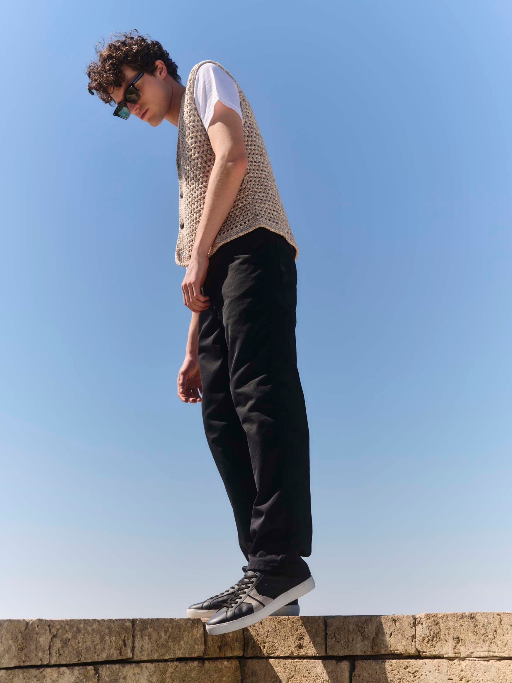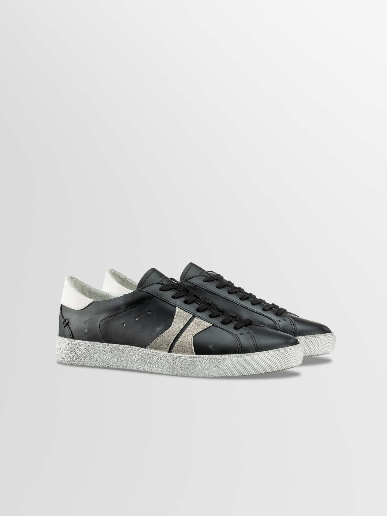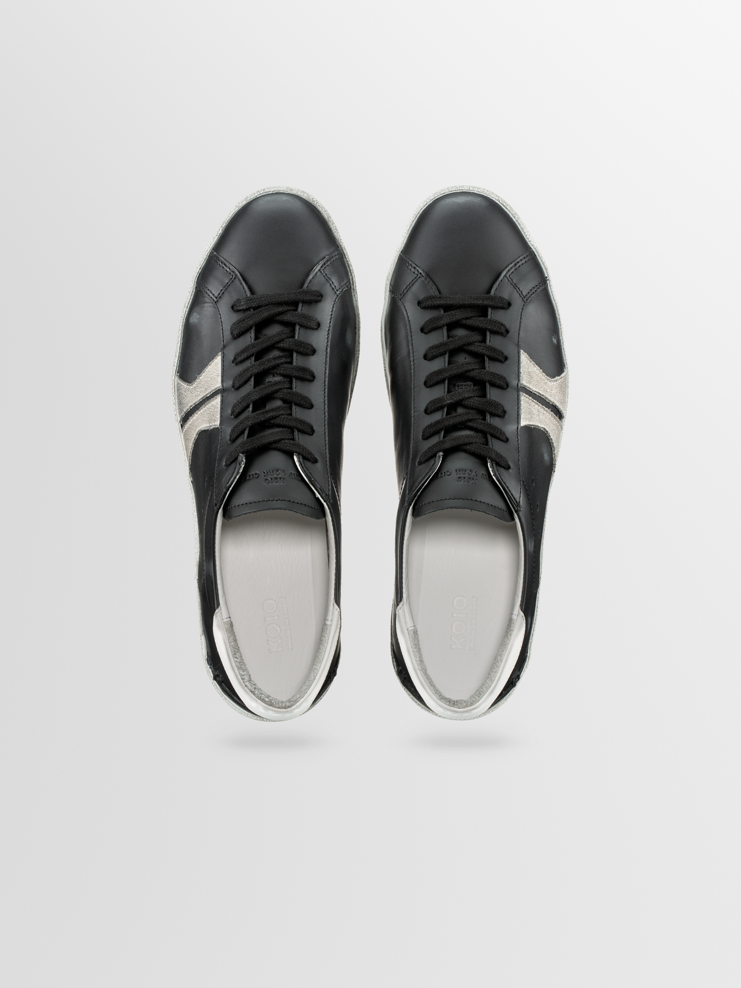 The Fabro sneaker is hand-distressed, so each pair has a uniquely authentic vintage look. Shown here in a black, grey, and white Jet colorway, this pair is handcrafted in Italy from Italian leather and suede. It's detailed with our signature K logo at the side and finished with hand-stitching at the heel. The breathable cotton-terry lining keeps you cool and comfortable.
