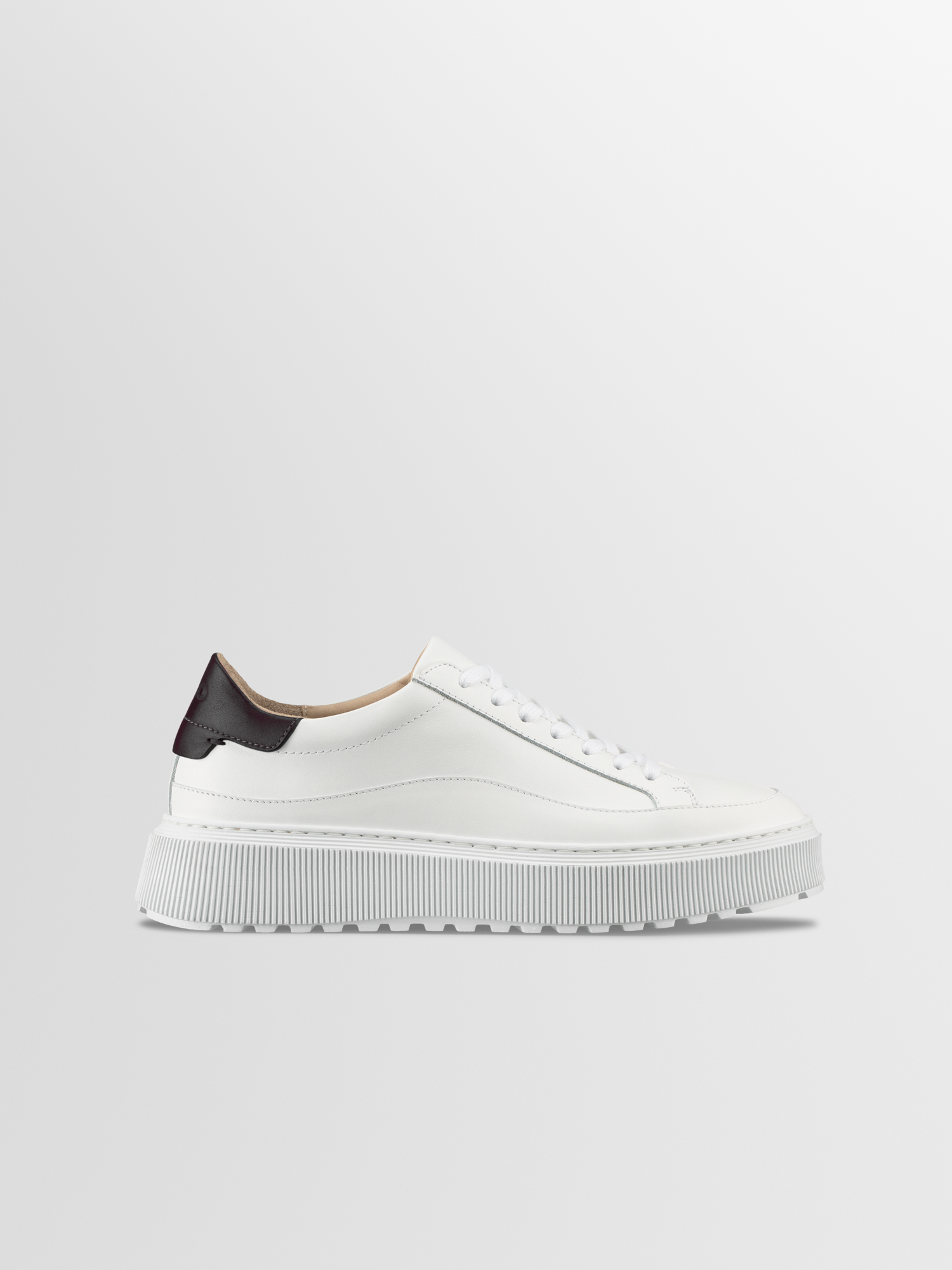 The Mira sneaker is guaranteed to make any outfit look 10 times cooler, thanks to its platform lug sole. Shown here in our white and black Lafayette colorway, it's handcrafted in Italy from smooth Italian leather and detailed with curved seams along the sides for an ultra-modern look.