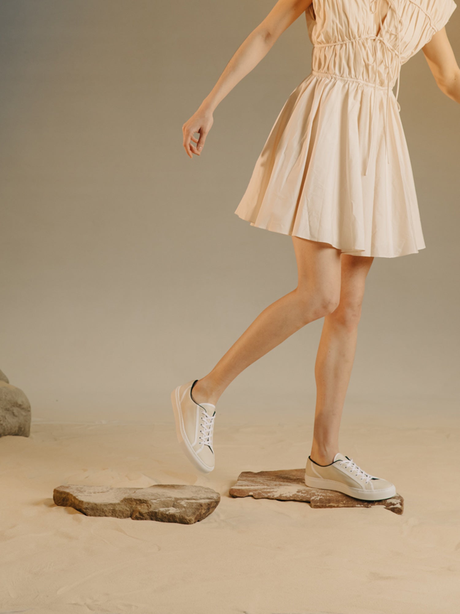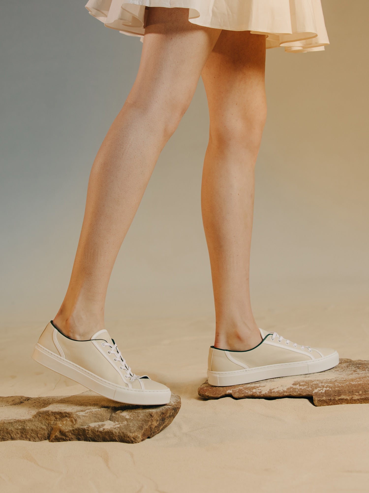 Inspired by tennis shoes from the ‘70s, the Torino has a Sesame upper detailed with sporty white stripes along the edges. It’s handcrafted in Italy from LWG-certified sustainable Italian leather and set on our custom-developed rubber sole.